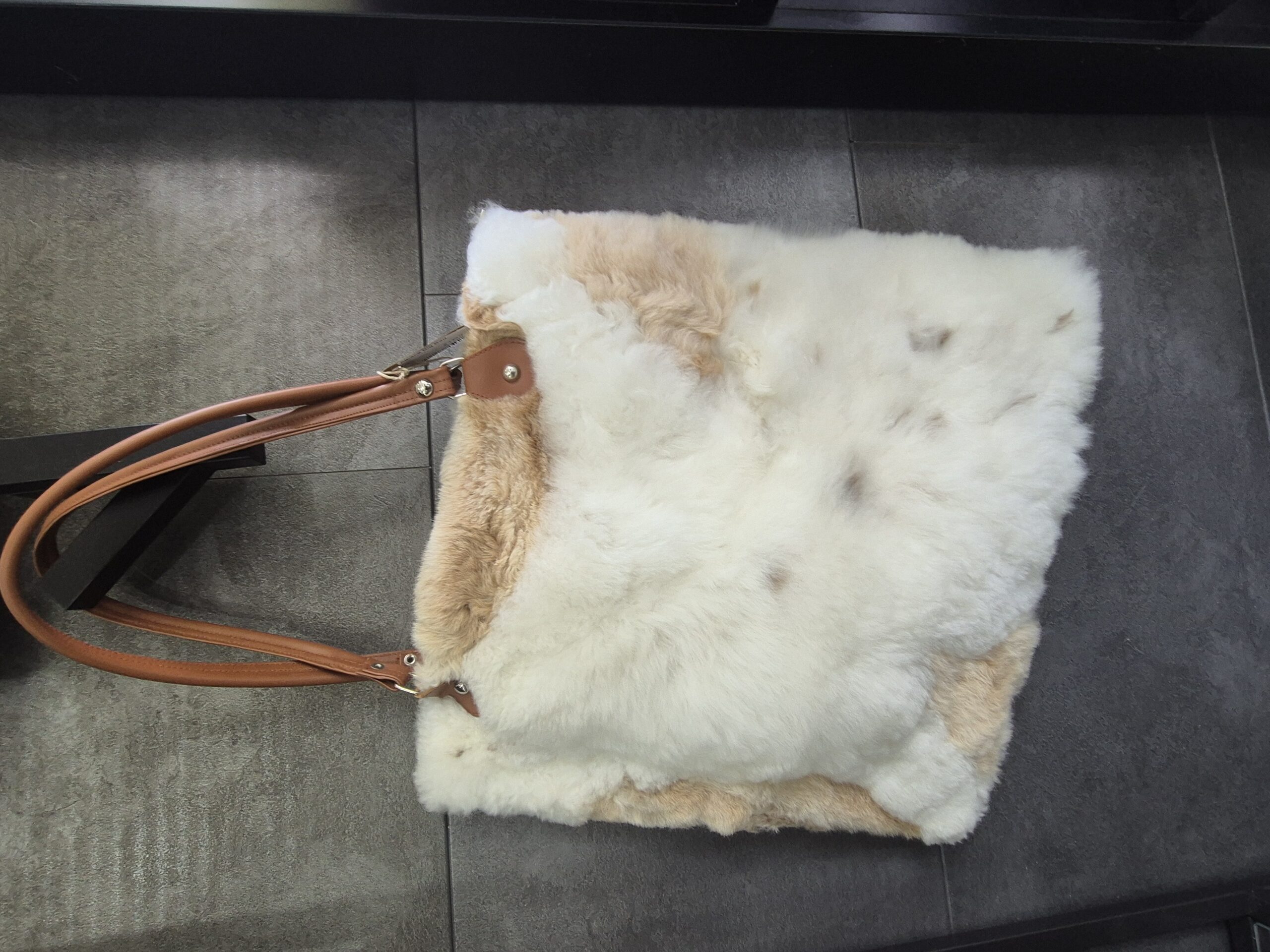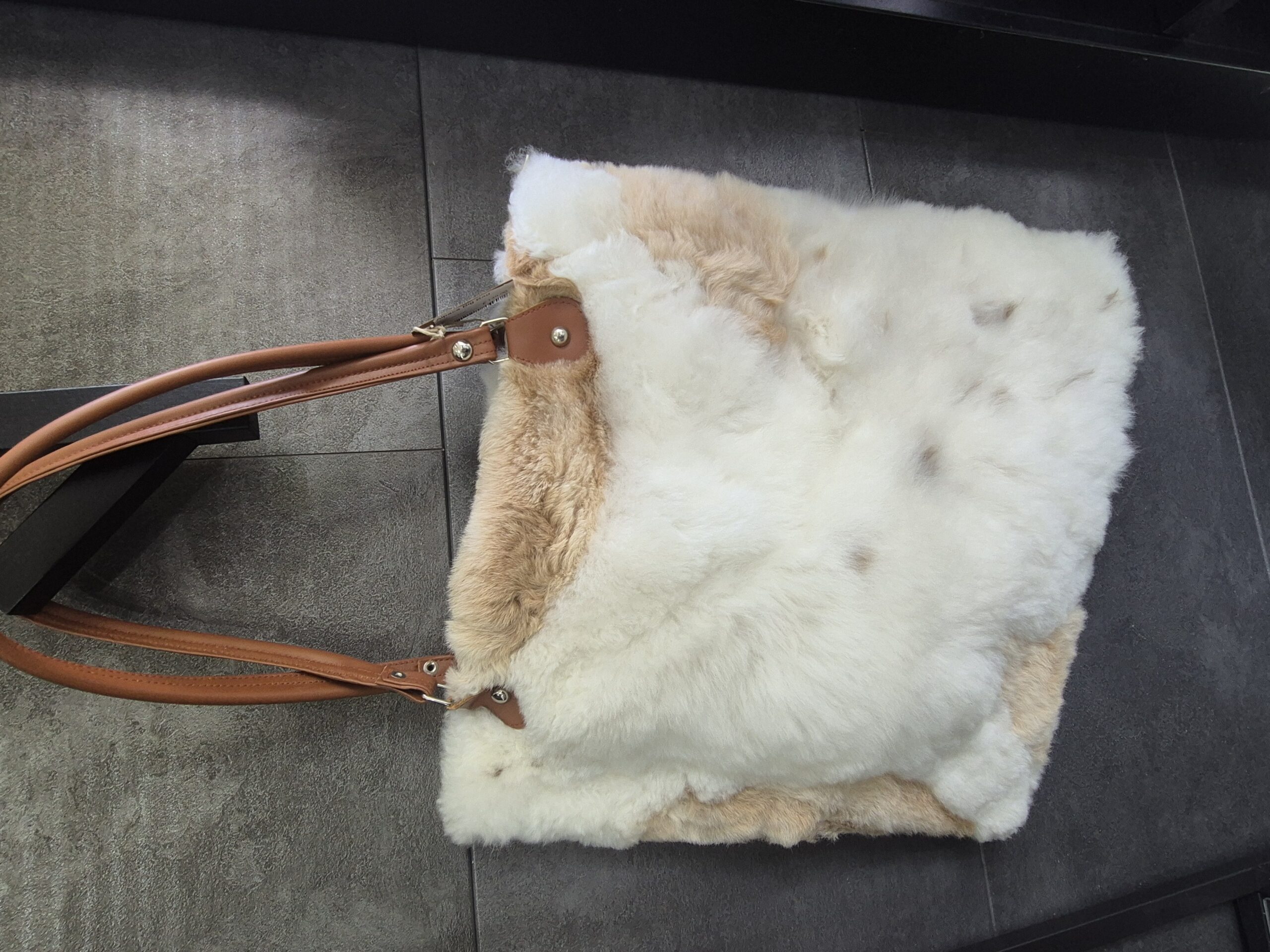 Alpaka-Tasche mit Lederriemen in Naturfarben, gemischt,