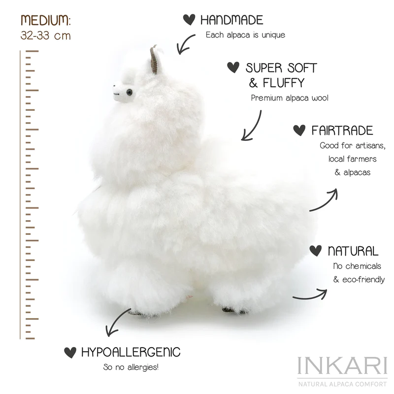 Inkari – Alpaka Kuscheltier Medium (32 cm) – Ivory White
