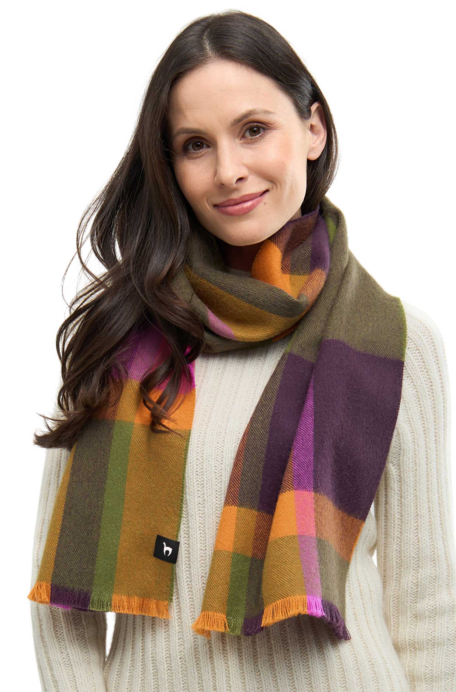 Alpaka Webschal ALEGRO aus 100% Royal Alpaka – khaki-pink